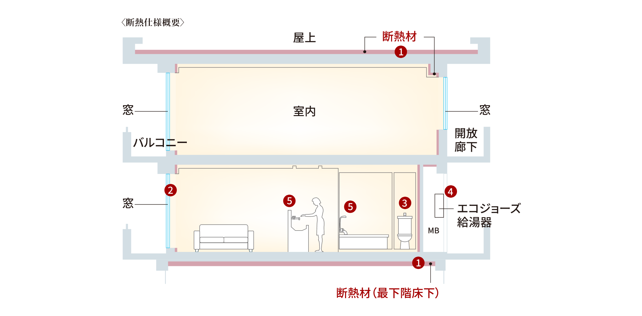 先進の技術を取り入れることで、エネルギーの消費や使用料金を削減できる構造や仕様を実現。