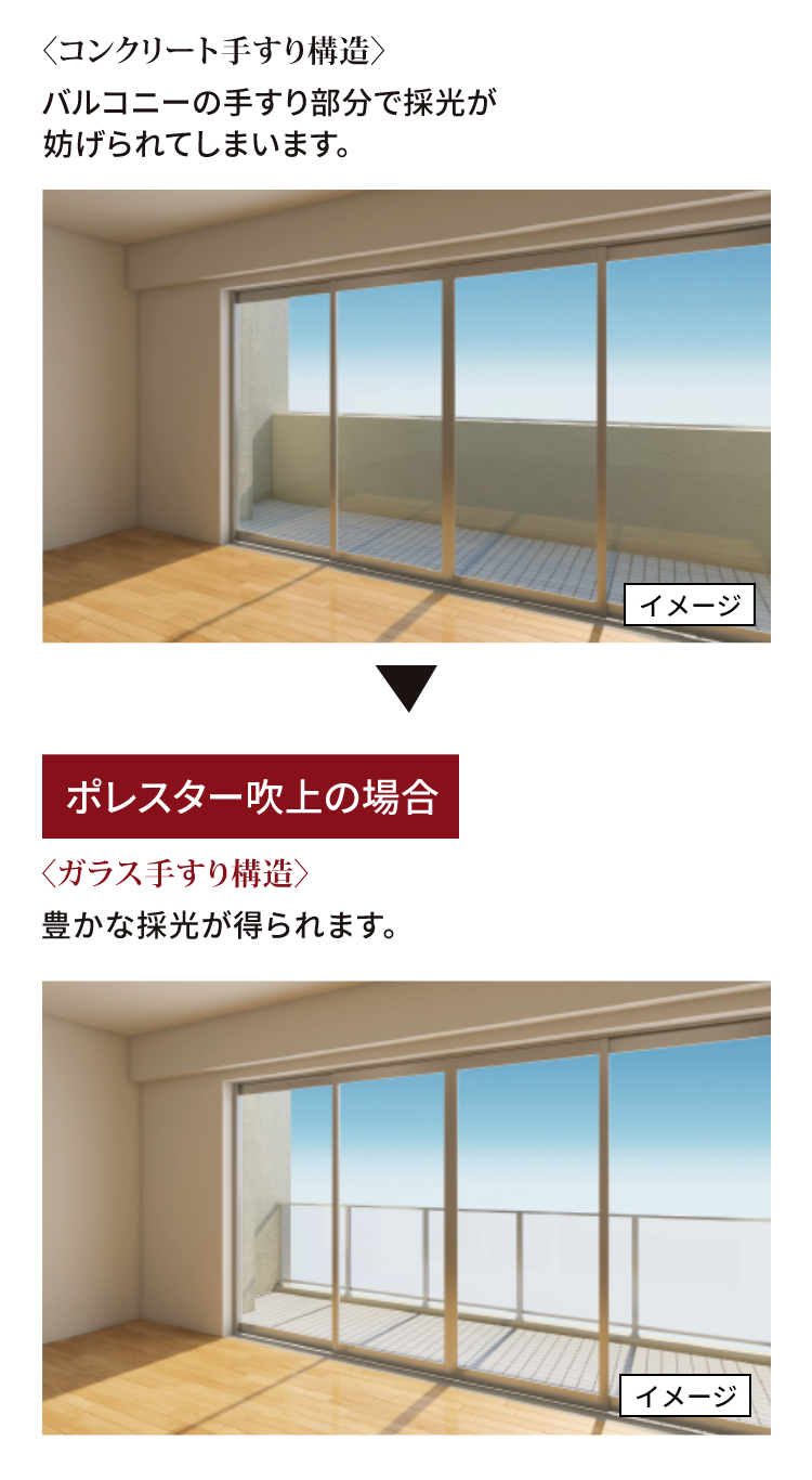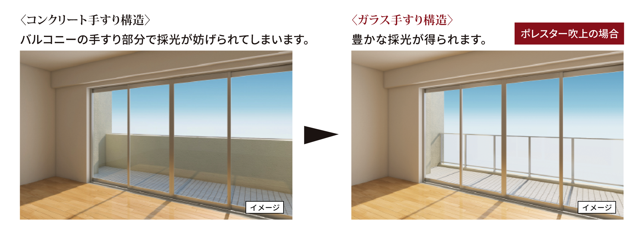 ※ガラス手すりの高さ・形状・色・透明度は住戸により異なります。