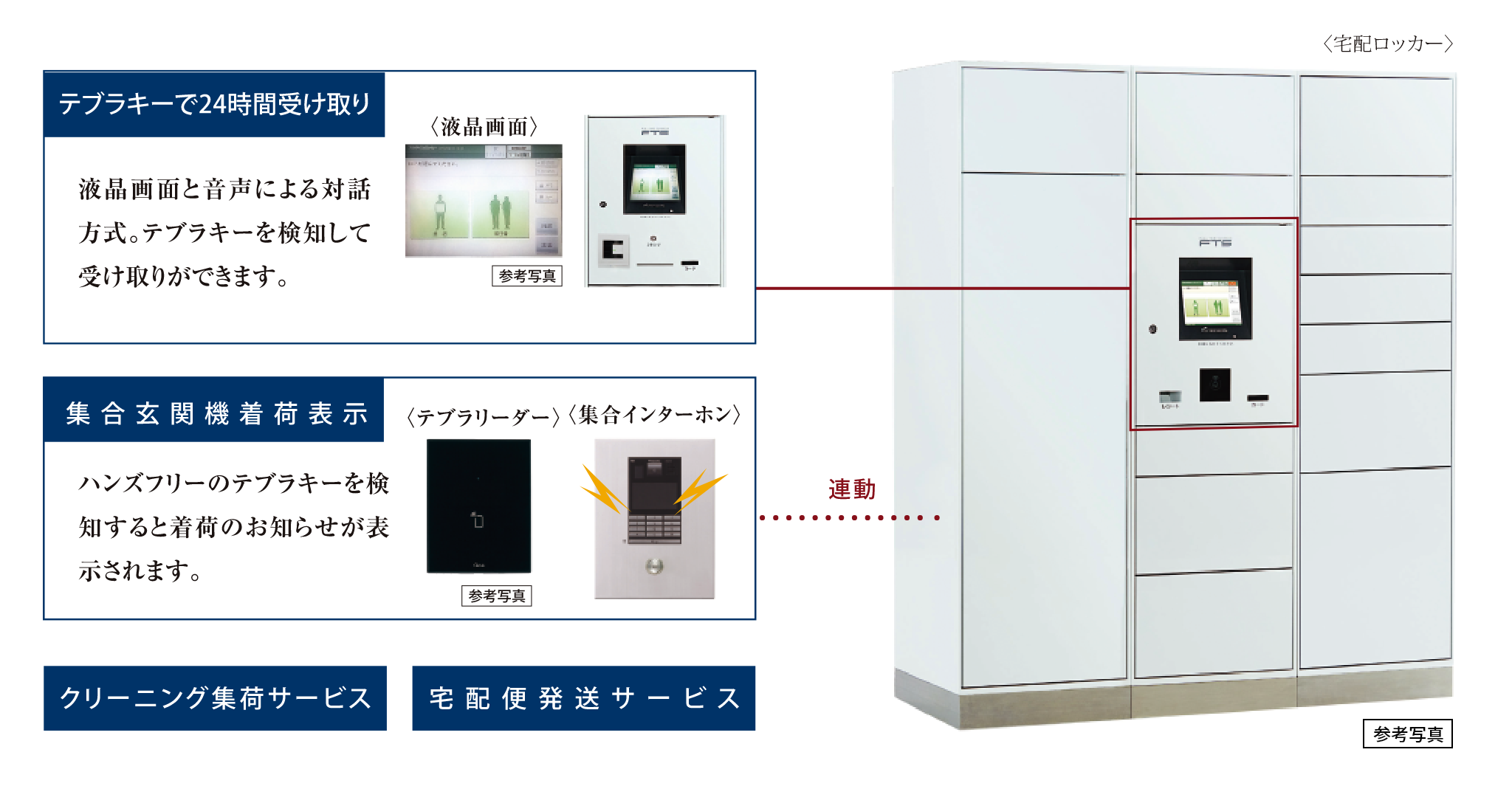 1階メール室に便利機能を搭載した宅配ロッカーを設置。不在時でも荷物を受け取れる便利さが好評です。
